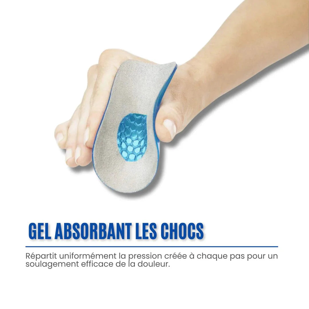 ✔ Amorti des chocs : gel viscoélastique qui absorbe les impacts lors de la marche ou de la station debout prolongée.